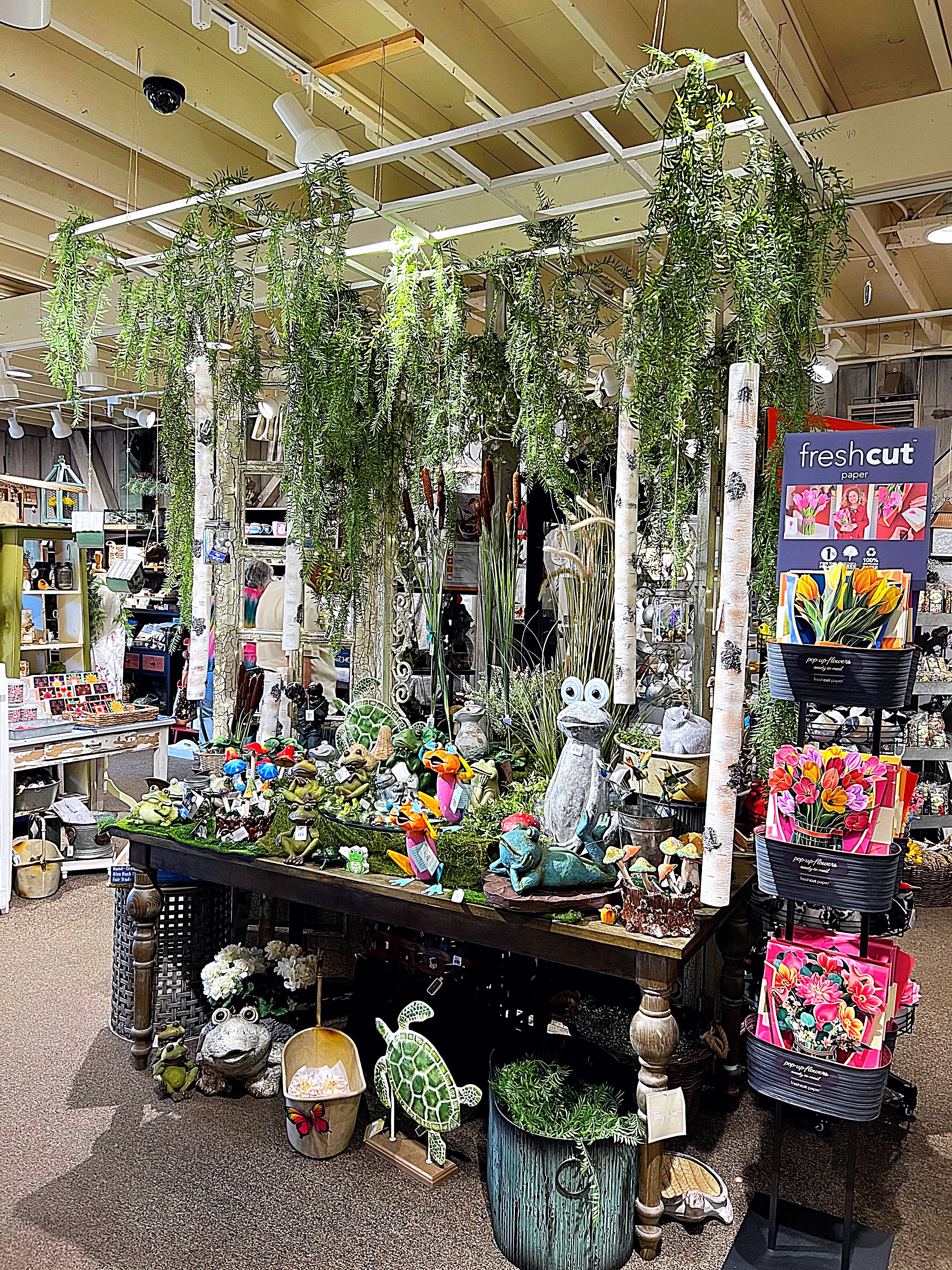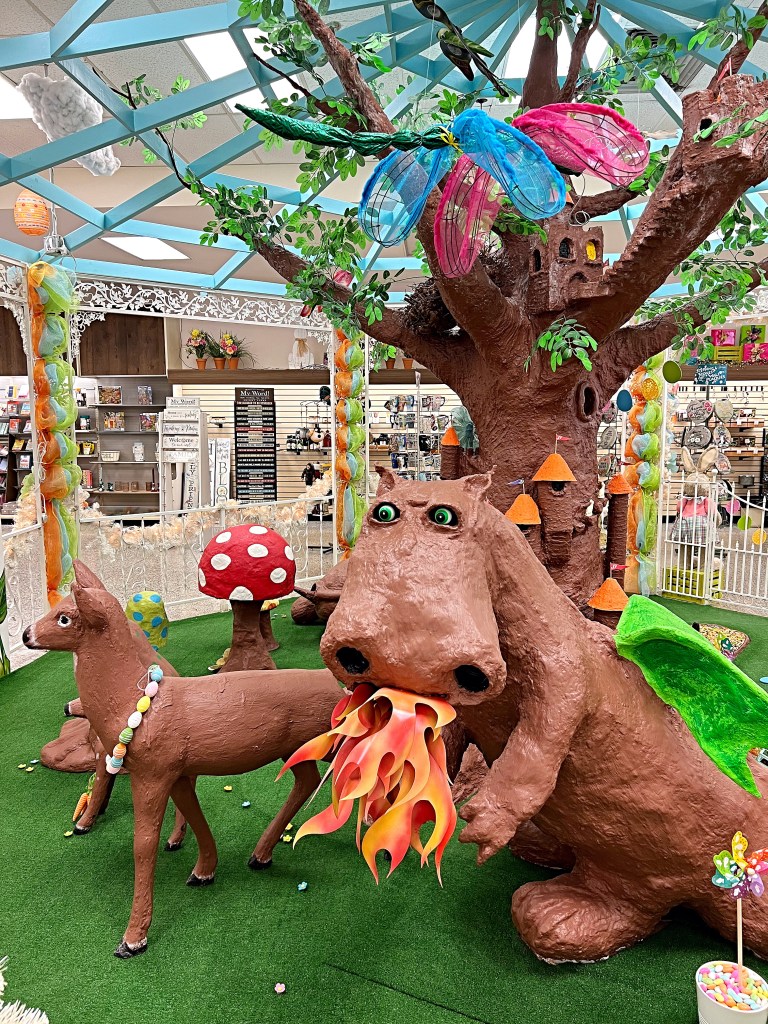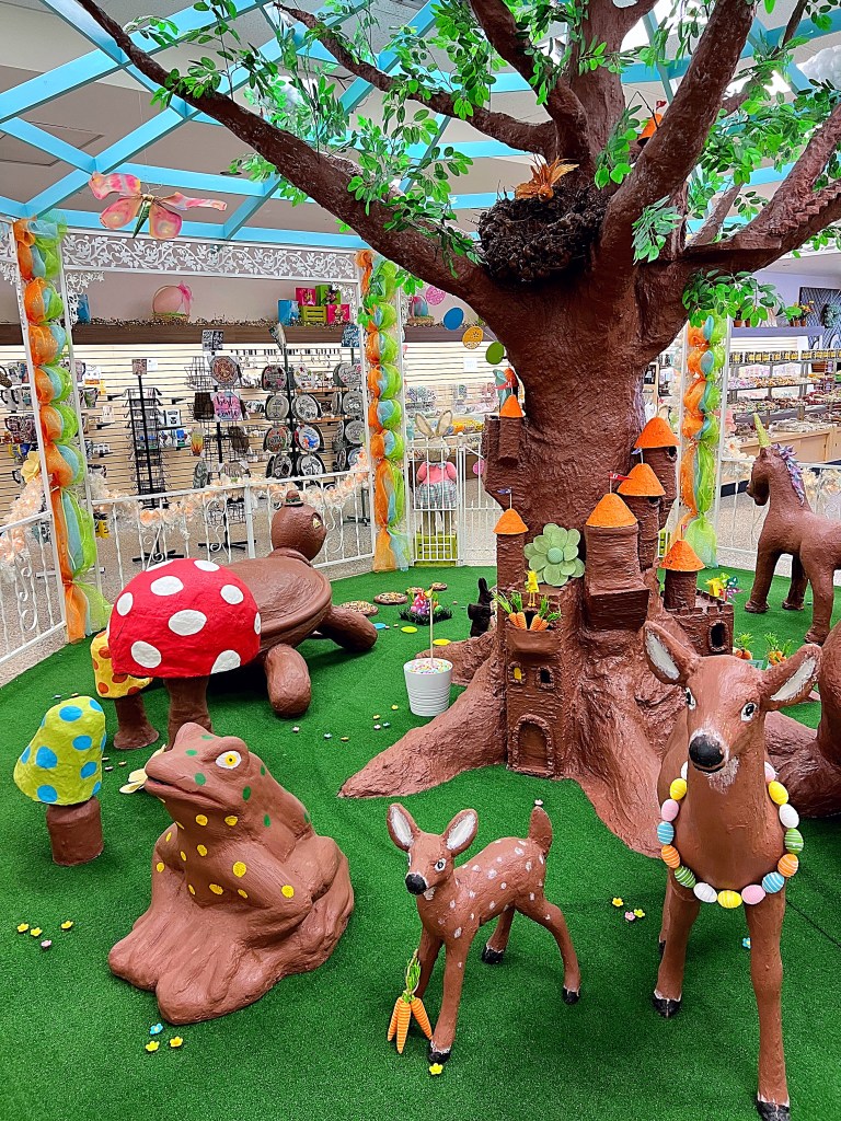 On the day we visited, it was all about Easter. We walked through Easter Bunny Lane first. The 300-foot indoor display is free to enjoy, and open from February 15th through the Monday after Easter. Each section of the lane has different spring and Easter themes that included animated figures and music. Some of the lighting and decorations in the scenes can be purchased from the store. The way they have the items displayed sometimes gives you a different perspective on ways that the products they sell can be used, and is great for showing you how the product functions and looks when in use.