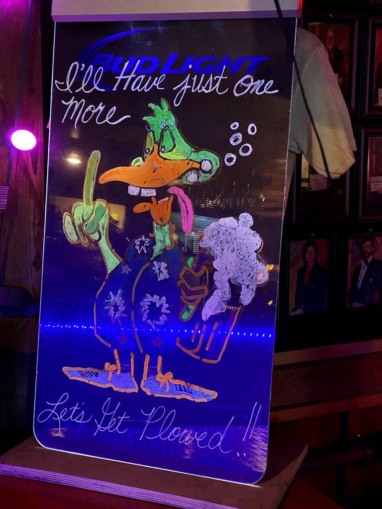 If you stop to check this place out make sure to walk around and check out all the interesting decorations both inside and on their back patio. Oh and the food is good too, lol. We of coarse had to try their wings and enjoy a couple cold beverages. Before you leave you might also want to check out there little souvenir shop…the products are as interesting as the decor.
