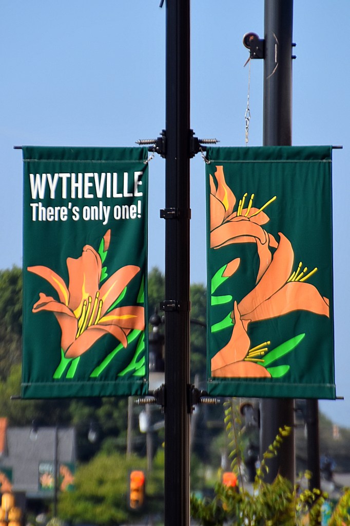In the morning we had some time before our reservation so we did some exploring in Wytheville, VA. When you approach the town you can’t miss the hot-air-balloon-themed water tower with the town name on it. Also throughout the town you will see signs with the town name and the slogan, “There’s only one!” This is because if you do a search you will find that while most city names are used more than once the city of Wytheville only exists in Virginia.