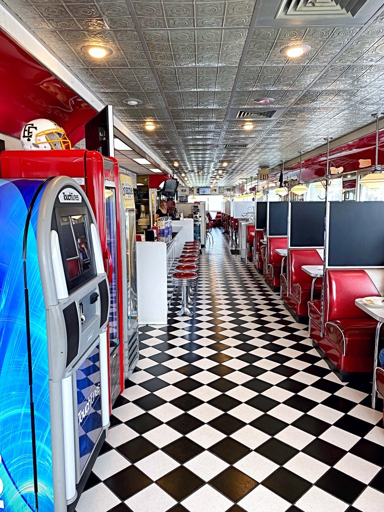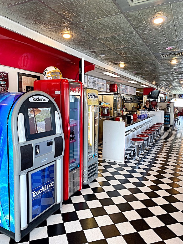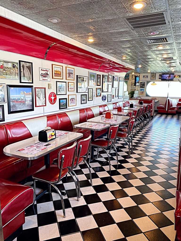Walking into the diner is like taking a step back in time. The vintage touches added, and musical memorabilia make you feel like you’re back in the 50’s and 60’s. The home style food is served in generous portions and will fill any hungry traveler’s belly.