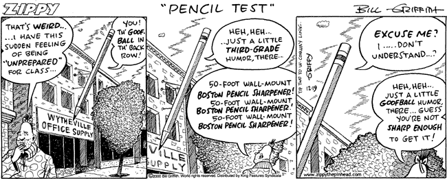 The “big pencil” also gained some fame in December 2000 when it was the features in a national syndicated comic strip “Zippy” by Bill Griffith.