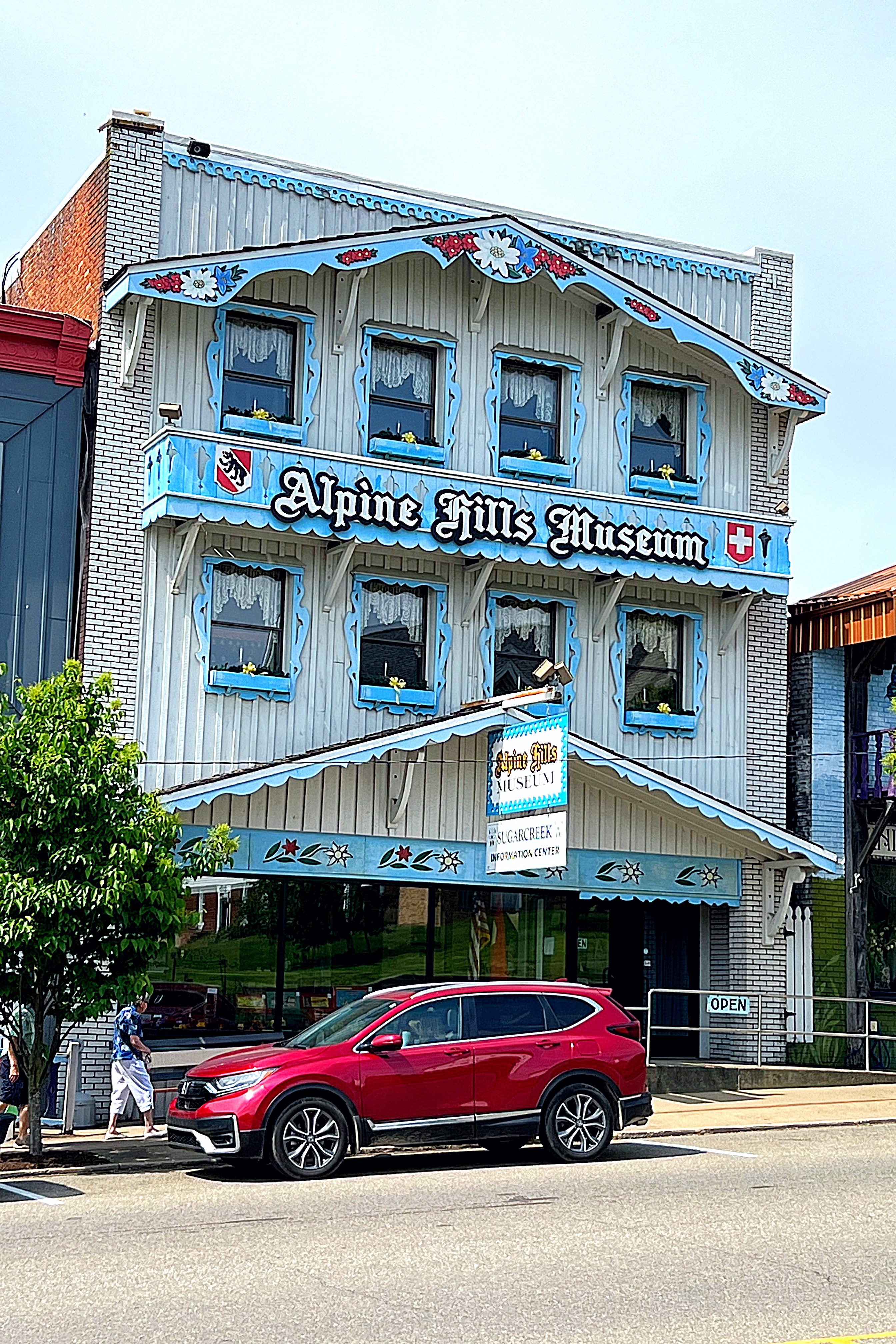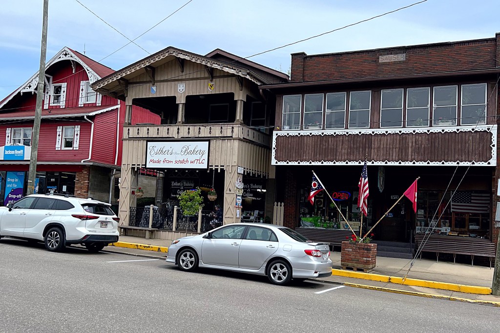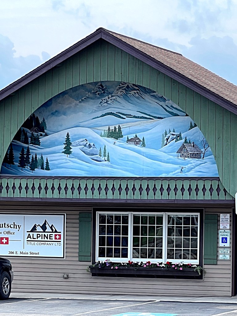 We finished up and made our way into downtown Sugarcreek. The first thing will notice is the Swiss-styles storefronts and the murals throughout the town. A local artist, Tom Miller, painted the murals and also designed the storefronts.