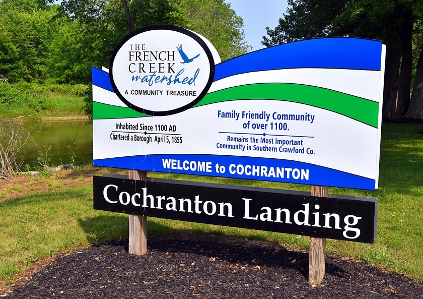 According to the informational signage the Cochranton area has been inhabited since 1100 AD, and was chartered as a borough April 5, 1855. The creek itself played an important part in the French and Indian War as well as in the settlement of northwest Pennsylvania. It’s original name was Riviere aux Boeufs of the French, but was renamed in 1753 by George Washington to French Creek.