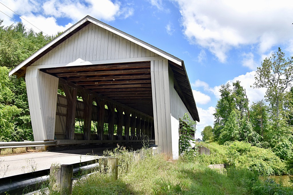 Next up was Giddings Road Covered Bridge, just 3 miles from Netcher, located at 1399 Giddings Rd, Jefferson, OH. This bridge was built in 1995 and 107 feet long. There is only one small pull off, you may need to just park along the road if you’d like to stop and walk the bridge.