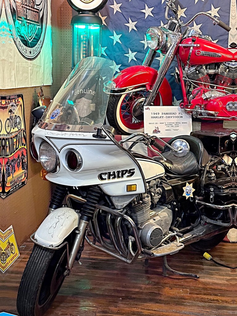 The museum is also home to two of the original “CHIPS” bikes signed by George Barris.