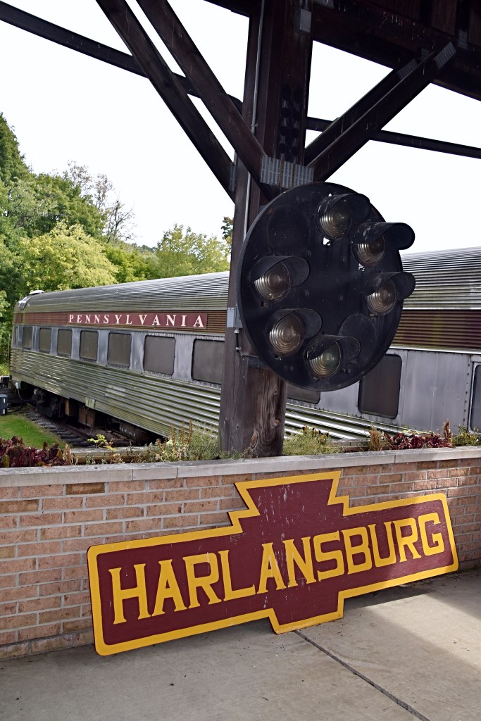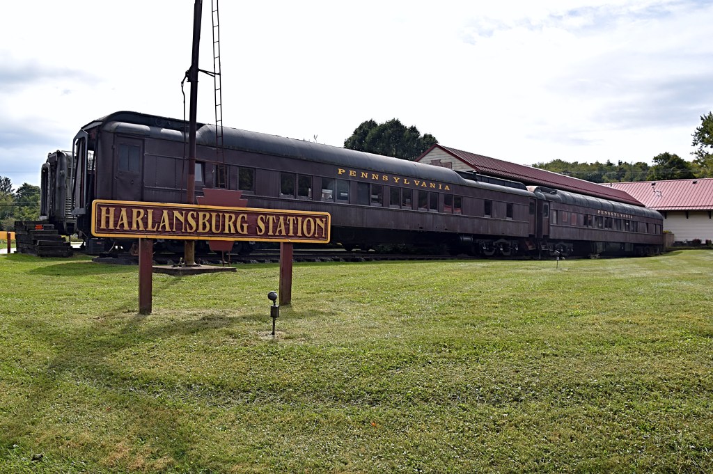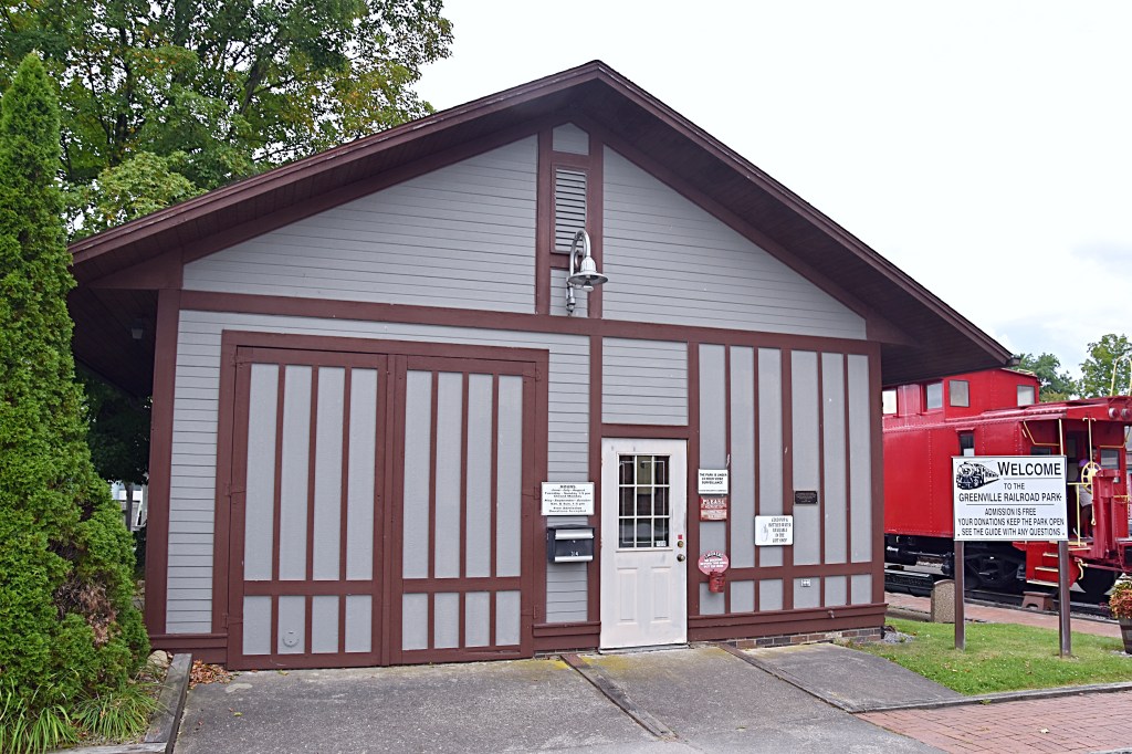 Our recent bike ride took us to some local historic spots. First stop was the Greenville Railroad Park & Museum in Greenville, PA. The park is located near a working track, currently operated by Norfolk Southern (the former Erie Railroad mainline). Started by volunteers in 1985 to preserve Greenville’s railroad history, the park is now part of the Greenville Museum Alliance.