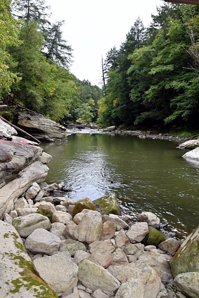 Heading towards our first stop, we passed through Cochranton, PA and over French Creek. We took a few minutes to stop and walk along the water at a boat launch near the bridge. This area also had a couple picnic tables tucked under the trees along the creek. This would be a great spot to grab some food from the Country Fair gas station or Cochranton Marketplace, located just up the street and bring it back to enjoy while sitting by the creek.